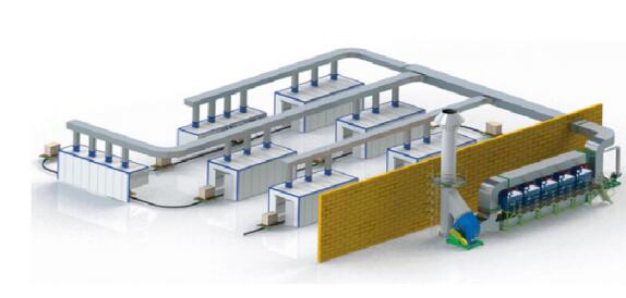Udstødningsgassen sendes ind i den aktive kuladsorber af luftindtagsventilatoren. Under påvirkning af Van der Waals kraft opfanges det organiske opløsningsmiddel i udstødningsgassen og adsorberes af mikroporerne i det aktive kul. Efter at det aktive kul er mættet med adsorption, regenereres det. Udstødningsgassen renses ved adsorption af aktivt kul og udledes derefter rent.