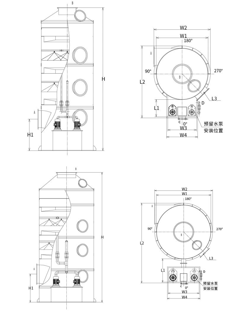 For at sikre transport bekvemmelighed og sikkerhed er PP cyklon scrubber tårne opdelt i to specifikationskategorier: